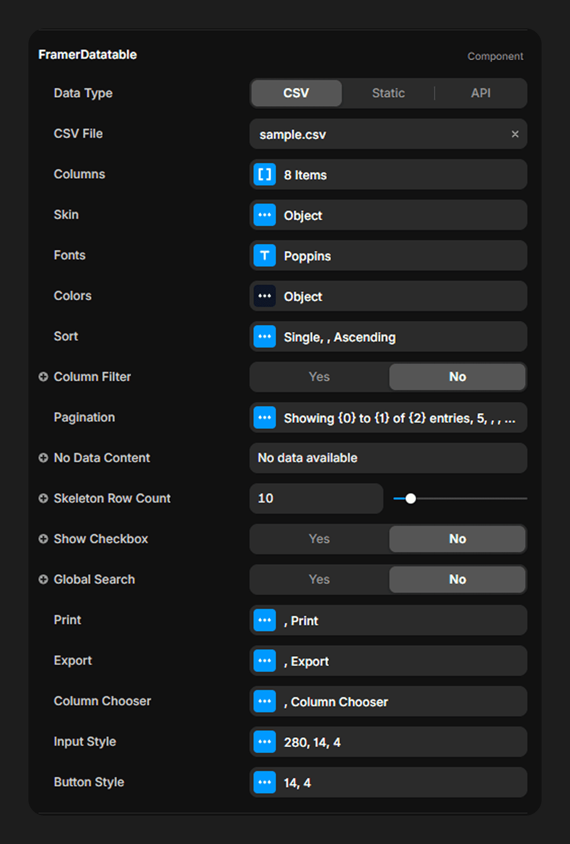A powerful data table component for Framer with CSV, API, and static JSON support.